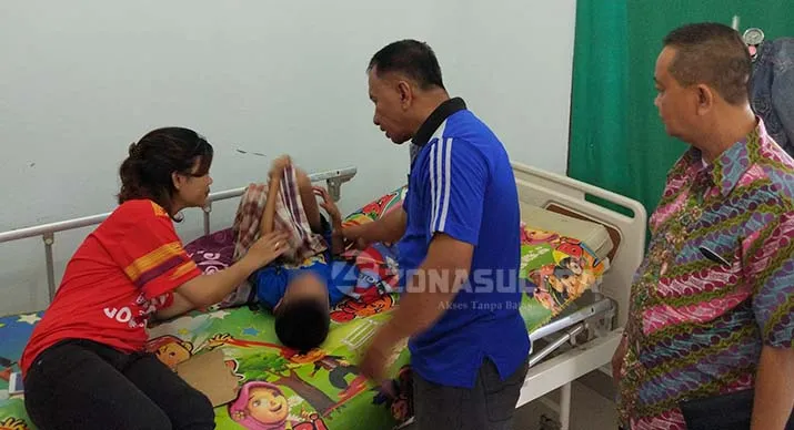 BPOM RI – Kepala Pusat Penyidikan Obat dan Makanan BPOM RI Hendri Siswadi (ujung kanan) saat mengunjungi salah satu korban penyalahgunaan obat di UDG RSJ Kendari, Jumat (15/9/2017). Ia menali kejadian yang menimpa puluhan korban di Kota Kendari merupakan jenis kejahatan teror. (ILHAM SURAHMIN/ZONASULTRA.COM)