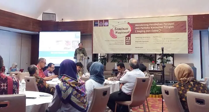 SEMINAR NASIONAL - Kepala Badan Pengkajian dan Pengembangan Perdagangan (BPPP) Kementerian Perdagangan (Kemendag), Kasan Muhri saat menjadi Keynote Speaker Seminar Nasional yang bertajuk "Mendorong Perubahan Persepsi dan Perilaku Konsumsi Pangan (Daging dan Cabai)" yang diadakan di Hotel Sari Pan Pacific Jakarta Pusat, Selasa (23/5/2017). (Rizki Arifiani/ZONASULTRA.COM)