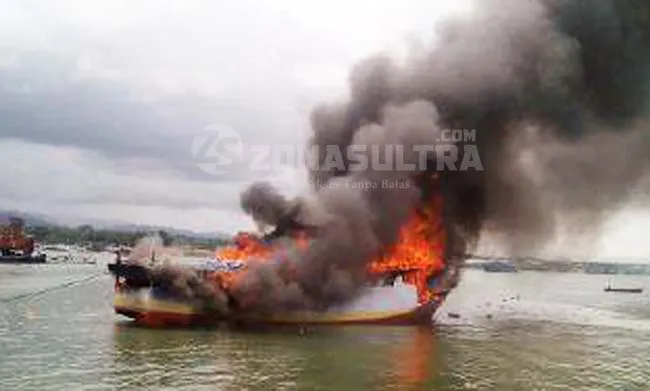 Breaking News: KM Sidrayani Hangus Terbakar di Pelabuhan Feri Wawonii