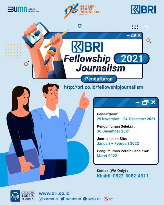 Corporate Secretary BRI Aestika Oryza Gunarto dalam wawancara (05/12), menyebutkan bahwa program BRI Fellowship Journalism merupakan bentuk empati perseroan terhadap sahabat media yang juga ikut terdampak akibat pandemi Covid-19. Lanjutnya, BRI juga ingin terlibat aktif dalam memberikan kontribusi yang berdampak nyata bagi pekerja media di Indonesia, yang nantinya mampu mendukung keberlanjutan karir bagi para jurnalis.