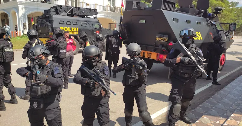 Brimob Gelar Simulasi Penanganan Teroris di Citra Land Kendari