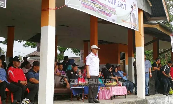 LUKMAN ABUNAWAS – Ketua KONI Sultra Lukman Abunawas saat membuka KONI CUP 1 di Kabupaten Kolaka, Selasa (2/5/2017). Ketua KONI Kabupaten Kolaka M. Jayadin ikut mendampingi mantan Bupati Konawe dua periode itu. (ILHAM SURAHMIN/ZONASULTRA.COM)
