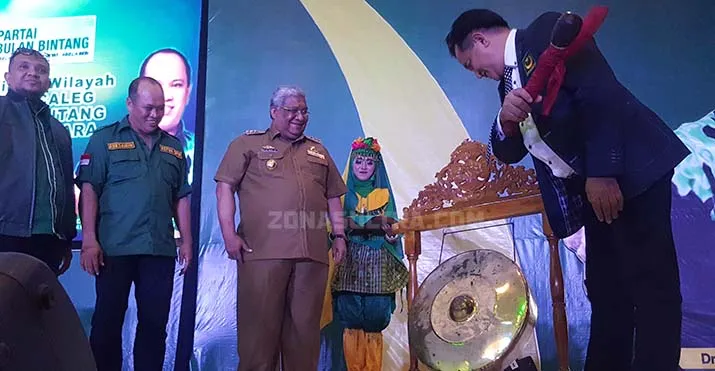 Empat nama itulah yang diceritakan Yusril sebagai tokoh-tokoh pendahulu PBB di Sultra. Setelah memberi sambutan, Yusril didampingi Gubernur Sultra Ali Mazi dan Ketua DPW PBB Sultra Ruksamin kemudian membuka acara secara simbolis dengan pemukulan gong. (b)