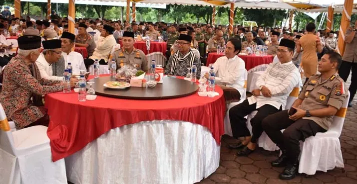 ZONASULTRA.COM, KENDARI – Kepolisian Daerah (Polda) Sulawesi Tenggara (Sultra) menggelar buka puasa bersama Forum Komunikasi Pimpinan Daerah (Forkopimda), tokoh masyarakat, tokoh politik dan tokoh pemuda di halaman upacara Mapolda, Selasa (14/5/2019)