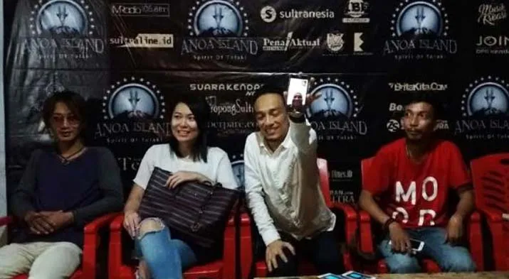ANOA ISLAND – Produser musik Arya Yudha Prawisara bersama sejumlah personel grup musik Anoa Island di Kendari, Rabu (22/11/2017). Mereka memperkenalkan album lagu daerah Tolaki. (Rizky Arifiani/ZONASULTRA.COM)