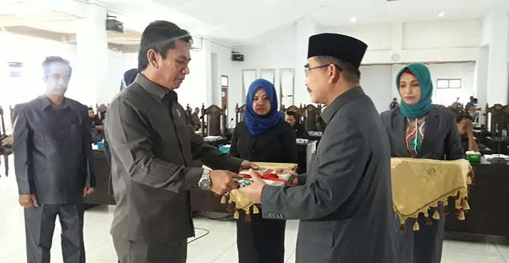Sementara itu, enam raperda inisiatif yang disampaikan oleh DPRD yakni tentang standar pelayanan minimum pelayanan pemerintahan; pengelolaan barang milik daerah; izin lingkungan; kesehatan ibu, bayi baru lahir, bayi dan anak balita; perlindungan guru, dan pendidikan baca tulis Alquran.