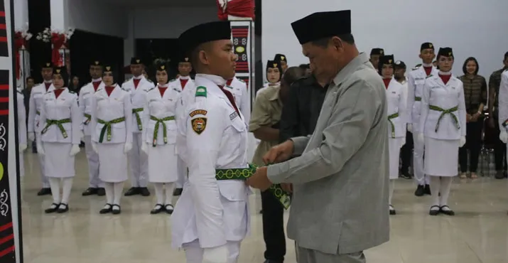 ZONASULTRA.COM, KOLAKA – Bupati Kolaka, Ahmad Safei mengukuhkan 76 Anggota Pasukan Pengibar Bendera Pusaka (Paskibraka) Hari Ulang Tahun (HUT) Kemerdekaan RI 17 Agustus 2019. Pengukuhan Paskibraka itu dilaksanakan di Pendopo Rumah Jabatan Bupati Kolaka, Kamis (15/8/2019).