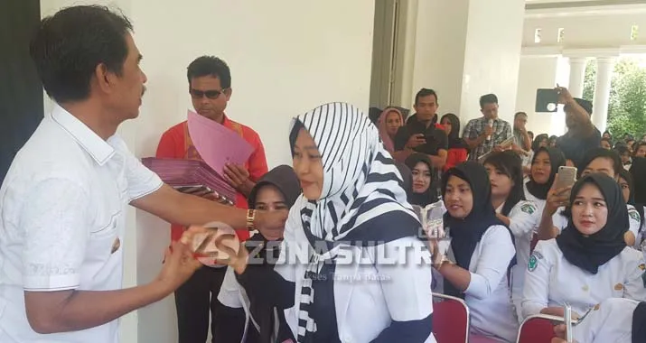 ZONASULTRA.COM, LASUSUA – Bupati Kolaka Utara (Kolut) Nur Rahman Umar menyerahkan Surat Keputusan (SK) kepada 136 CPNS di rumah jabatan bupati (Rujab), Sabtu (30/92017).