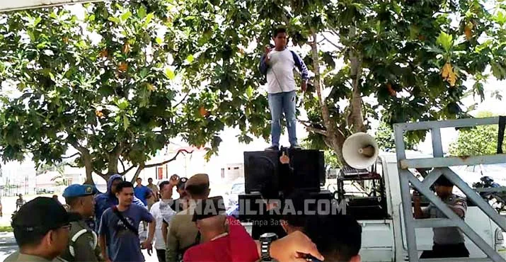 ZONASULTRA.COM, WANGI-WANGI – Sejumlah massa yang menamakan diri Gerakan Masyarakat Pemikir Kiri (GMPK) Kabupaten Wakatobi kembali melakukan aksi demonstrasi di depan Kantor Bupati Wakatobi, Senin,(11/3/2019). Mereka menuntut pertanggungjawaban dana hibah Komite Nasional Pemuda Indonesia (KNPI).