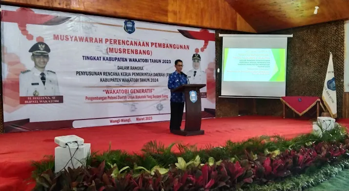 Hal itu ia sampaikan kepada perangkat Pemerintah Daerah (Pemda) setempat, pada pelaksanaan musyawarah perencanaan pembangunan (Musrenbang) Kabupaten Wakatobi tahun 2023, dalam rangka penyusunan rencana kerja pemerintah daerah (RKPD) Kabupaten Wakatobi tahun 2024 di aula Pesanggrahan Budaya, Kecamatan Wangiwangi Selatan (Wangsel), Kamis (9/3/2023).