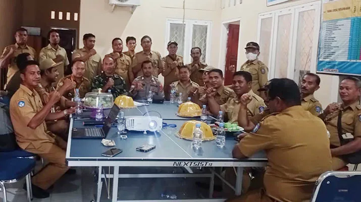FOTO BERSAMA-Sejumlah Kepala Desa dan Lurah di wilayah Kecamatan Wangiwangi melakukan sesi foto bersama TNI/Polri di kantor Kecamatan setempat.