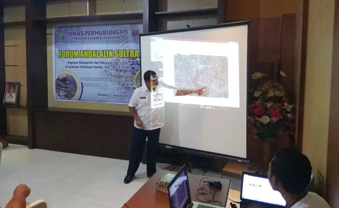 Forum Andalalin - penjelasan mengenai rekayasa lalu lintas jalan“Salah satu solusi yang ditawarkan untuk pasar baru itu adalah apa yang kita sebut dengan sistem rekayasa lalu lintas, semua kendaraan yang menuju ke UHO harus satu arah, begitupula sebaliknya kendaraan yang dari UHO mau menuju pasar baru mereka harus memutar lewat jalur Rumah Sakit Kendari,” jelas Hado ditemui usai menghadiri pertemuan forum Analisis Dampak Lalulintas (Andalalin) di Kantor Dinas Perhubungan dan Informatika Sultra, Rabu (18/1/2017).