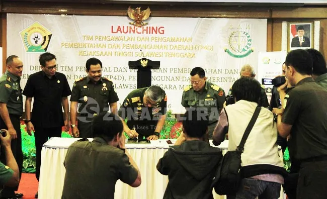 Launching TP4D ini dihadiri oleh para bupati/walikota se-Sultra, pimpinan SKPD Sultra, Danrem, Danlanud dan Danlanal.