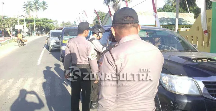 RAZIA CIPKON – Satuan Polsek Lasolo tengah melakukan pemeriksaan surat kendaraan bermotor dalam rangka melakukan razia cipta kondisi (Cipkon jelang hari raya Idhul Adha. (Jefri/ZONASULTRA.COM)