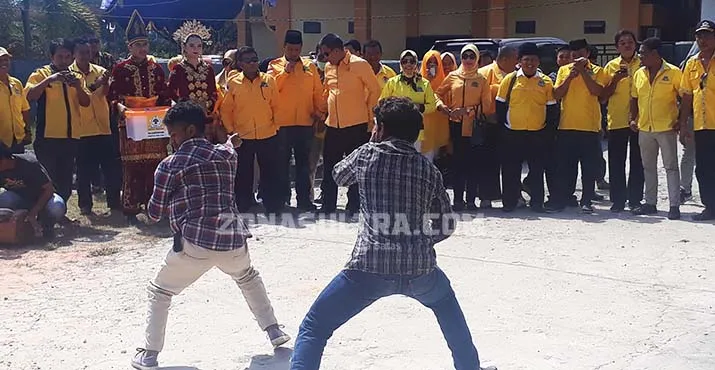 ZONASULTRA.COM, KENDARI – Daftar di KPU Kota Kendari, Selasa (17/8/2018), DPD II Partai Golkar Kota Kendari tampilkan atraksi pencak silat. Atraksi pencak silat ini ditampilkan sebagai bukti bahwa Partai Golkar Kota Kendari siap bertarung dalam Pemilihan Legislatif 2019 mendatang.