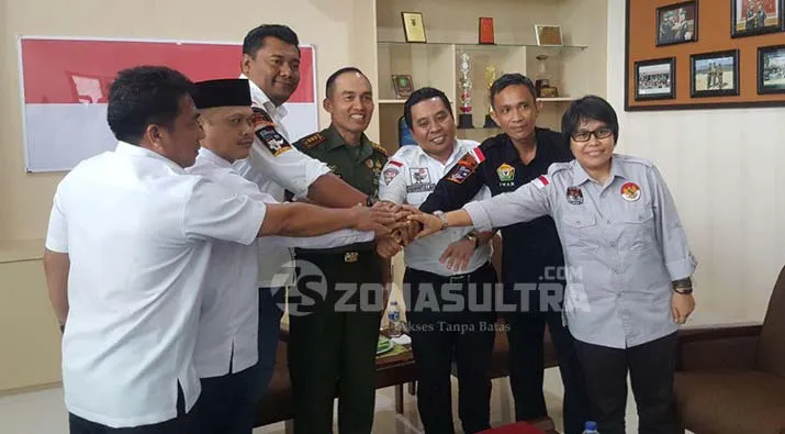 PILGUB SULTRA – Ketua KPU Provinsi, Hidayatullah bersama komisioner KPU lainnya berkunjung ke Korem 143/HO, Rabu (19/7/2017). (Lukman/ZONASULTRA.COM)