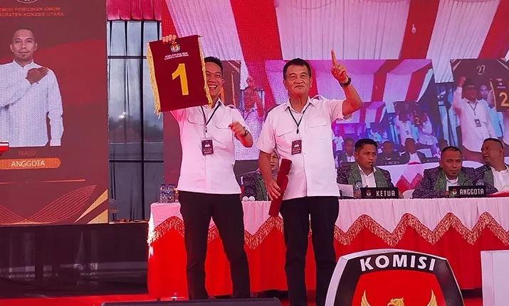 Diketahui, Pasangan calon (Paslon) Bupati dan Wakil Bupati Kabupaten Konawe Utara (Konut) resmi mendapatkan nomor urut yang akan dipakai pada Pemilihan Bupati dan Wakil Bupati di Pilkada 2024. Dari hasil pengundian, Ikbar-Abu Haera mendapatkan nomor urut satu sedangkan Sudiro-Raup mendapat nomor urut dua.