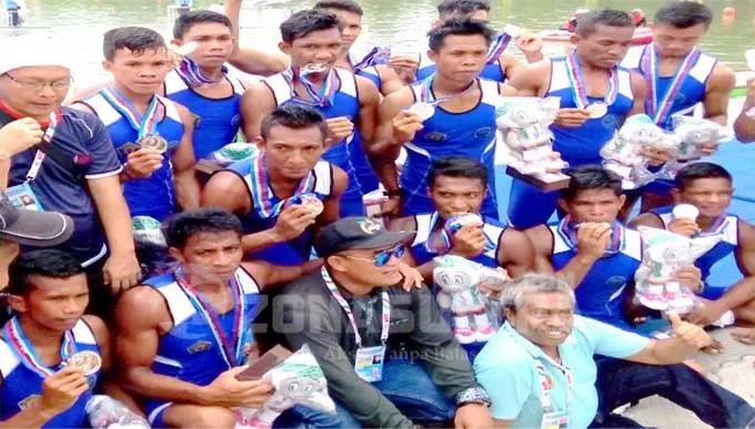 Melalui nomor pendayung 20 jarak 1.000 meter putra, tim dayung Sultra berhasil menyumbangkan medali perak bagi kontingen Sultra, di lomba yang dilaksanakan di Stadion Dayung Situ Cipule Kabupaten Karawang, Jawa Barat, Jumat (23/9/2016).