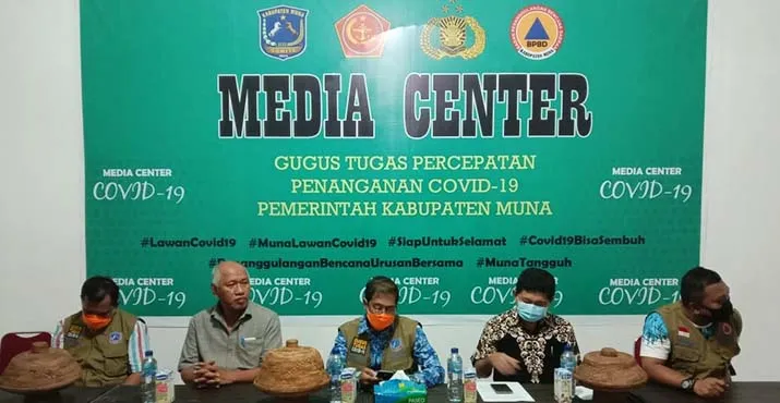 KONFRENSI PERS - Tim Gugus Tugas Penanganan Covid-19 Kabupaten Muna, Sulawesi Tenggara (Sultra) menggelar konferensi pers perkembangan pasien positif, Selasa (9/6/20). (Nasrudin/ZONASULTRA.COM)