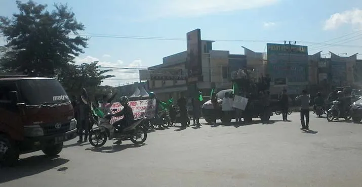 ZONASULTRA.COM, KENDARI – Belasan pengurus Himpunan Mahasiswa Islam (HMI) Cabang Kolaka berdemonstrasi di pertigaan kampus baru Universitas Halu Oleo (UHO) Kendari, Selasa (17/7/2018). Para mahasiswa ini menuding ada sejumlah problem di perusahaan tambang nikel PT Ceria Nugraha Indotama (CNI).