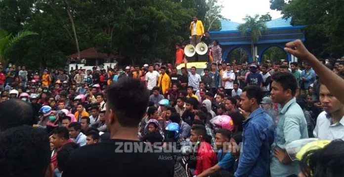 DEMO - Ribuan massa yang tergabung dalam Keluarga Besar Mahasiswa (KBM) Universitas Halu Oleo (UHO) berunjuk rasa di Markas Kepolisian Daerah (Mapolda) Sulawesi Tenggara (Sultra), Jalan Haluoleo Kendari, Senin (11/3/2019). (Fadli Aksar/ZONASULTRA.COM)