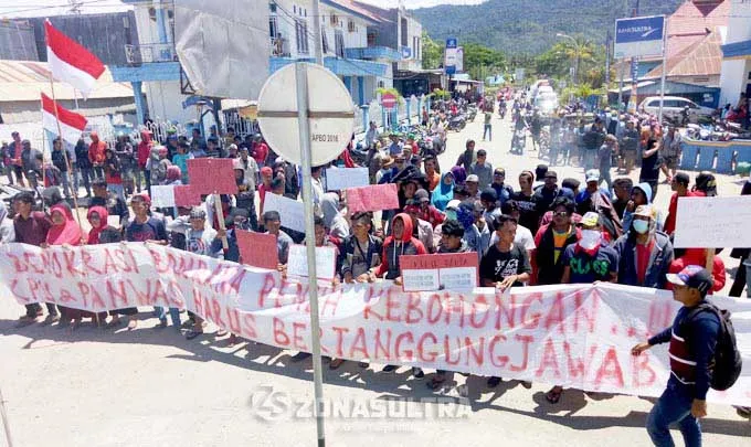 Asri, salah seorang jenderal lapangan saat berorasi memaparkan pelaksanaan Pilkada Bombana telah terjadi kecurangan yang sangat masif dilakukan oleh salah satu pasangan calon bupati.