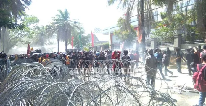 ZONASULTRA.COM, KENDARI – Demonstrasi yang dilakukan ribuan mahasiswa dari berbagai perguruan tinggi Kota Kendari di depan gedung Dewan Perwakilan Rakyat Daerah (DPRD) Sulawesi Tenggara (Sultra), Kamis (26/9/2019) berakhir ricuh sekira pukul 13.00 wira.
