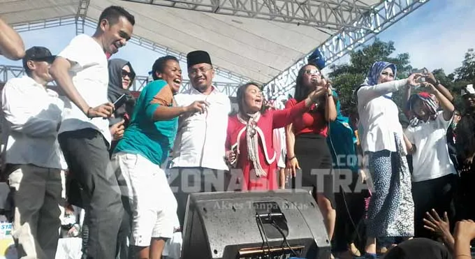 ZONASULTRA.COM, KENDARI – Muhammad Zayat Kaimuddin (Derik) dan Suri Syahriah Mahmud berhasil menghadirkan belasan ribu simpatisan dalam deklarasi pencalonan walikota di pelataran Eks MTQ Kendari, Jumat (23/9/2016).