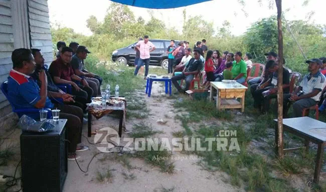 TATAP MUKA – Calon Wali Kota Kendari Abdul Rasak (tengah baju merah) saat membeberkan visi dan misinya di hadapan puluhan petani di Kelurahan Pudaleu, Kecamatan Baruga, Kendari, Minggu (16/10/2016). Dalam visi-misi tersebut ada satu program yang paling ditekankan oleh Rasak agar dapat meningkatkan kesejahteraan petani. (RAMADHAN HAFID/ZONASULTRA.COM)