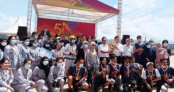 Kegiatan May Day yang digelar di Kawasan Pabrik PT VDNI berlangsung dengan kebahagian baik TKA maupun karyawan lokal.
