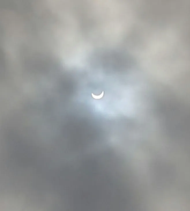 Meski terlihat banyak awan, namun warga dapat melihat dengan sempurna dengan menggunakan kacamatan hitam. Bahkan beberapa warga melihat tanpa menggunakan alat pemantau.