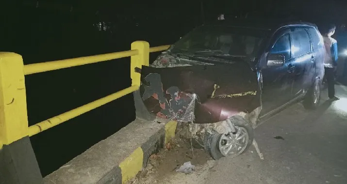 Diduga Sopir Mabuk, Mobil di Mubar Tabrak Jembatan