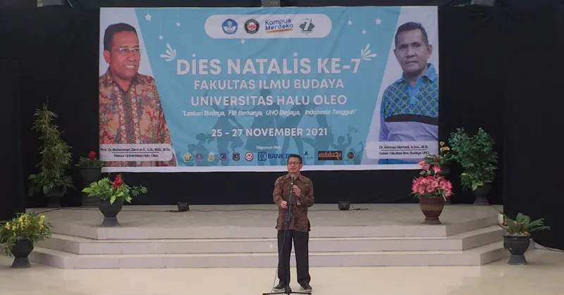 Fakultas Ilmu Budaya (FIB) menggelar Dies Natalis ke 7 Tahun yang di laksanakan di Gedung Teater pada 25 November 2021. (Sutarman/ZONASULTRA.COM)