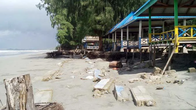 Kepala Desa Puudonggala Surianto mengatakan, ombak yang menghantam pantai tersebut diperkirakan setinggi dua meter. Sehingga bibir pantai mengalami abrasi yang berdampak pada tiang-tiang gasebo mengalami kerusakan.