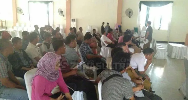 GLADI – Sebanyak 69 orang calon Panitia Pengawas Pemilu Kecamatan (Panwascam) kabupaten Konawe, Sulawesi Tenggara (Sultra) mengikuti rangkaian gladi sebagai persiapan jalannya pengambilan sumpah dan janji, Senin (9/10/2017) sore. (Restu Tebara/ZONASULTRA.COM)