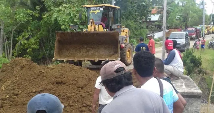Tak menunggu lama, dinas PU Bombana langsung mengerahkan alat berat untuk membenahi jembatan itu, agar bisa memudahkan pengguna jalan untuk sementara waktu.