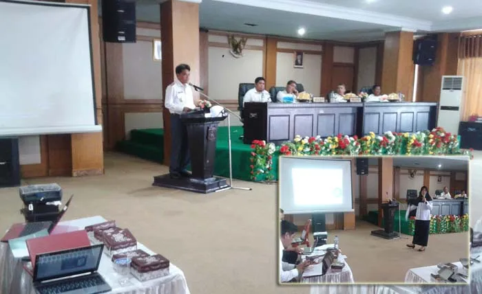 Terlihat Pelaksanan tugas (Plt) Kepala Dinas Kesehatan (Kadinkes) Kabupaten Konawe Utara (Konut), Nurjannah Efendi memberikan pemeparannya tentang sosialisasi kawasan bebas tanpa asap rokok kepada pemerintah kecamatan dan seluruh SKP yang hadir bertempat di aula pertemuan kantor Bupati anawaingguluri, Rabu (16/11/2016).