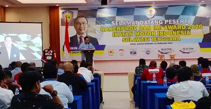 ZONASULTRA.COM, KENDARI – Rapat Kerja Provinsi (Rakerprov) Ikatan Motor Indonesia (IMI) Sulawesi Tenggara (Sultra) dan IMI Awards digelar di salah satu hotel di Kendari, Sabtu (1/2/2020). Dalam kegiatan itu, turut dihadiri oleh Direktur Lalu Lintas (Dirlantas) Kepolisian Daerah (Polda) Sultra Kombes Pol Faisal.