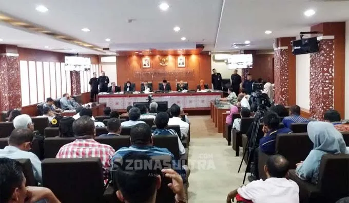 SIDANG – Sidang putusan Dewan Kehormatan Penyelenggara Pemilu (DKPP) memutuskan memecat satu komisioner Komisi Pemilihan Umum (KPU) Kota Kendari, di Ruang Sidang DKPP, di Jalan MH. Thamrin, Jakarta Pusat, Kamis (8/6/2017). (Rizki Arifiani/ZONASULTRA.COM)