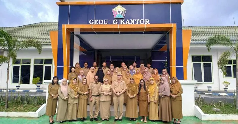 FOTO BERSAMA - Plt Kepala DLH Sultra Ansar bersam para pegawainya berfoto bersama di depan kantor DLH Sultra. (Foto : Istimewa/Foto diambil pada Februari 2020)