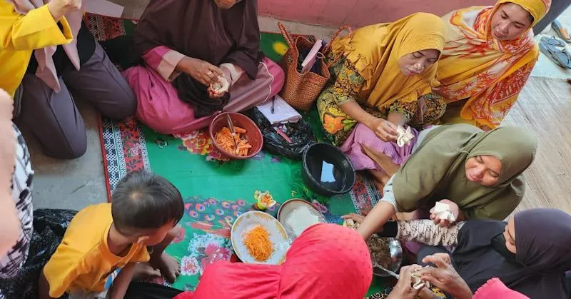 Proses pengolahan ikan Tuna (Thunnus) menjadi Dimsum sebagai pangan jajanan lokal binaan PKM dosen S1 Ilmu Keperawatan UMW Kendari di Petoaha.(istimewa)