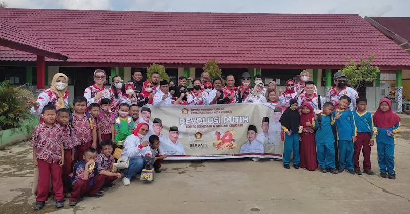 Pembagian itu dilakukan di dua tempat yakni SD 10 Kendari dan 49 Kendari di Kecamatan Mandonga. Pembagian susu dan biskuit ini program “Revolusi Putih” dalam rangka peringatan HUT ke-14 Partai Gerindra.