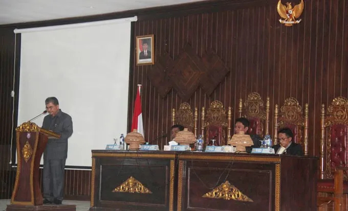 PENYERAHAN RAPERDA - Bupati Buton Utara Abu Hasan membacakan lima Raperda di gedung DPRD Butur, Jumat (7/7/2017). (Istimewa)