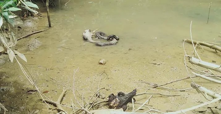 Ia menjelaskan bahwa dua ekor buaya tersebut berukuran sekitar satu meter, sedangkan ular tersebut terdiri dari satu ekor induk yang besar dan beberapa ekor anak dengan jenis ular sawah.
