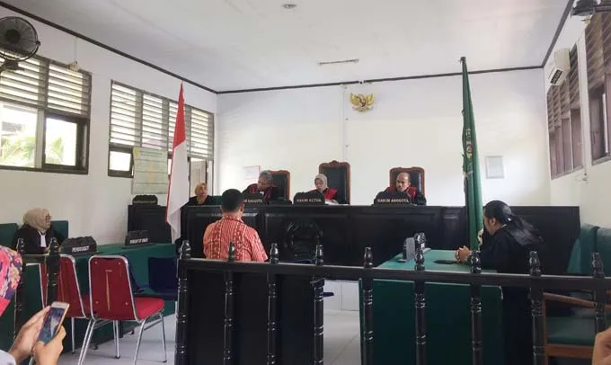 SIDANG – Sidang mantan anggota Komisi Pemilihan Umum (KPU) Konawe Selatan (Konsel) oleh majelis hakim Pengadilan Negeri (PN) Kelas IA Kendari, Selasa (11/7/2017). (Randi Ardiansyah/ZONASULTRA.COM)