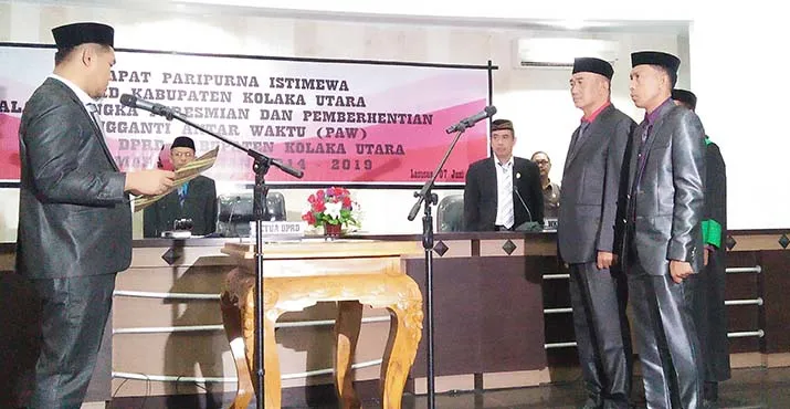 Andi Misbahuddin dan Amri Alwi menggantikan Ulfa Haeruddin Pawelloi dan Hidayat Idrus. Pelantikan PAW ini dihadiri Wakil Bupati Kolut H Abbas serta Ketua DPD PDIP Sultra Hugua. PAW tersebut dilakukan setelah melalui proses mekanisme hukum yang berlaku.