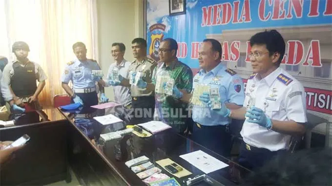 “Setelah dicek petugas mendapati kalau ribuan lembar uang kertas yang dibawa oleh pelaku ternyata palsu. Jadi saat itu kami langsung koordinasi dengan petugas TNI Angkatan Udara dan kepolisian untuk penyelidikan kasus lebih lanjut,” terang Rudi kepada awak media di Mapolda Sultra Jumat sore tadi, saat jumpa pers terkait penangkapan tersangka.