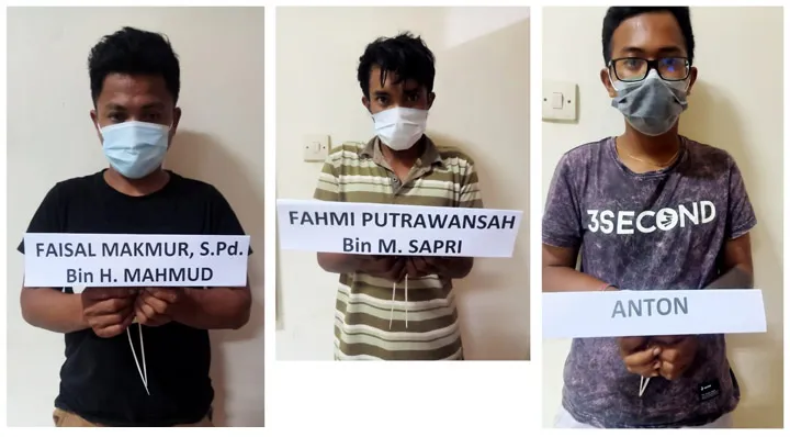 PENGEDAR SABU - Ditresnarkoba Polda Sultra berhasil mengungkap peredaran gelap narkoba di kawasan pabrik nikel PT VDNI pada Sabtu (3/10/2020). Ketiganya adalah Faisal Makmur (34), Fahmi Putrawansyah (26) dan Anton (23) merupakan sopir dump truck perusahaan nikel asal Tiongkok tersebut. (Istimewa)Edarkan Sabu, Tiga Karyawan PT VDNI Dibekuk Polisi