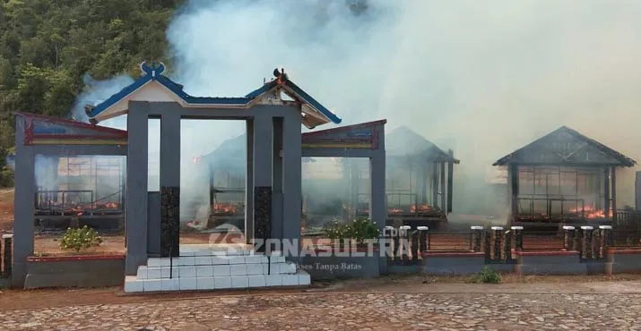 ZONASULTRA.COM, RUMBIA – Sebanyak 4 unit anjungan wisata di Desa Tangkeno, Kecamatan Kabaena Tengah, Kabupaten Bombana, Sulawesi Tenggara (Sultra) ludes terbakar, Rabu (22/8/2018) sekitar pukul 09.00 Wita. Belum diketahui secara pasti penyebab kebakaran 4 anjungan tersebut.