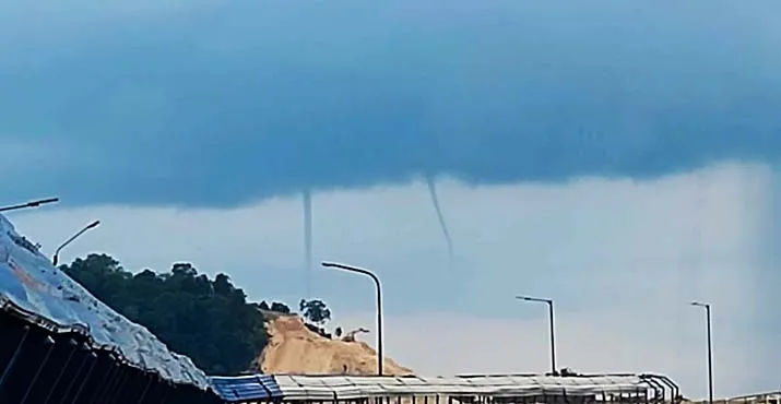 ZONASULTRA.COM, KENDARI – Fenomena waterspout atau angin berputar yang kerap dianggap sama sebagai angin puting beliung terlihat di perairan sekitar pelabuhan penyeberangan feri rute Torobulu-Tampo yang hanya berjarak beberapa ratus meter dari dermaga pada Jumat (1/4/2022).